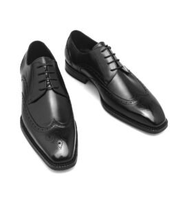 Black Leather Oxford Wingtip Brogue Shoes for Men